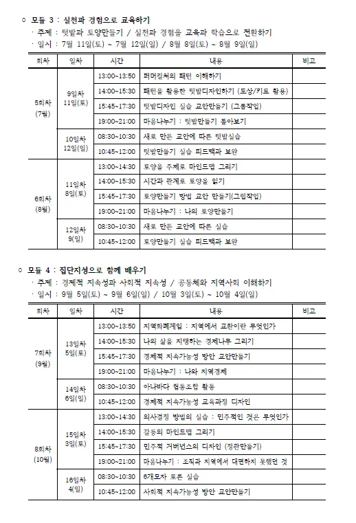 ◦ 모듈 3 : 텃밭과 토양만들기 / 실천과 경험을 교육과 학습으로 전환하기